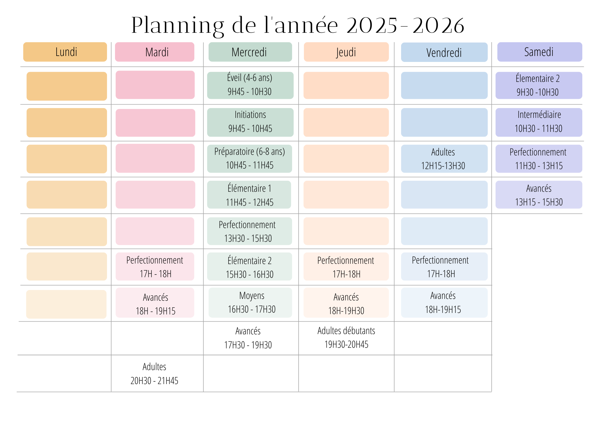 Planning des cours